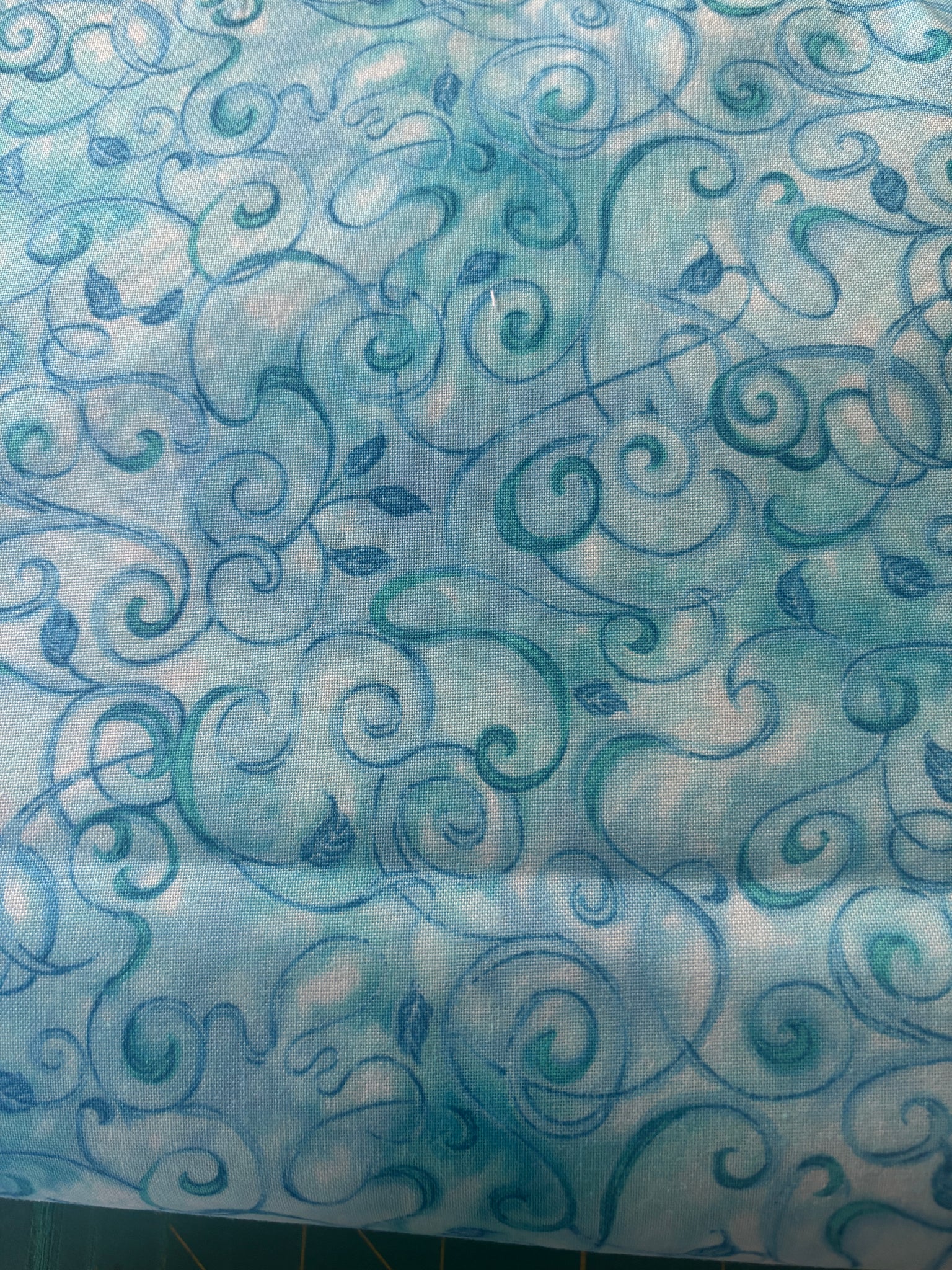 Robert Kaufman Fusions aqua leaves/swirls/tone-on-tone cotton print